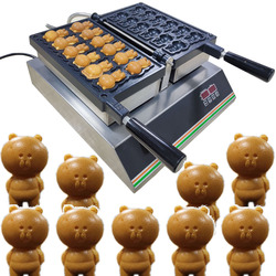 Máquina para hacer gofres giratoria con molde personalizado, máquina comercial antiadherente para pequeñas empresas, gofreras con forma de oso pequeño